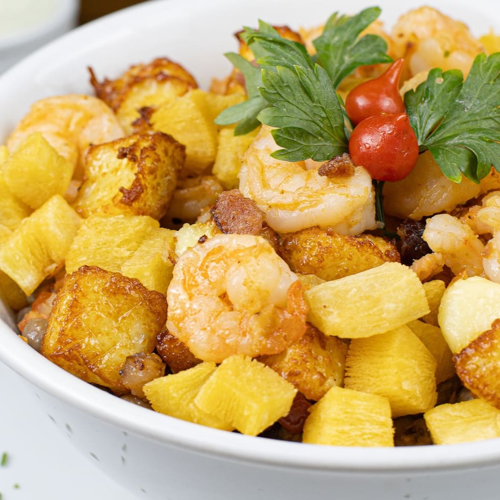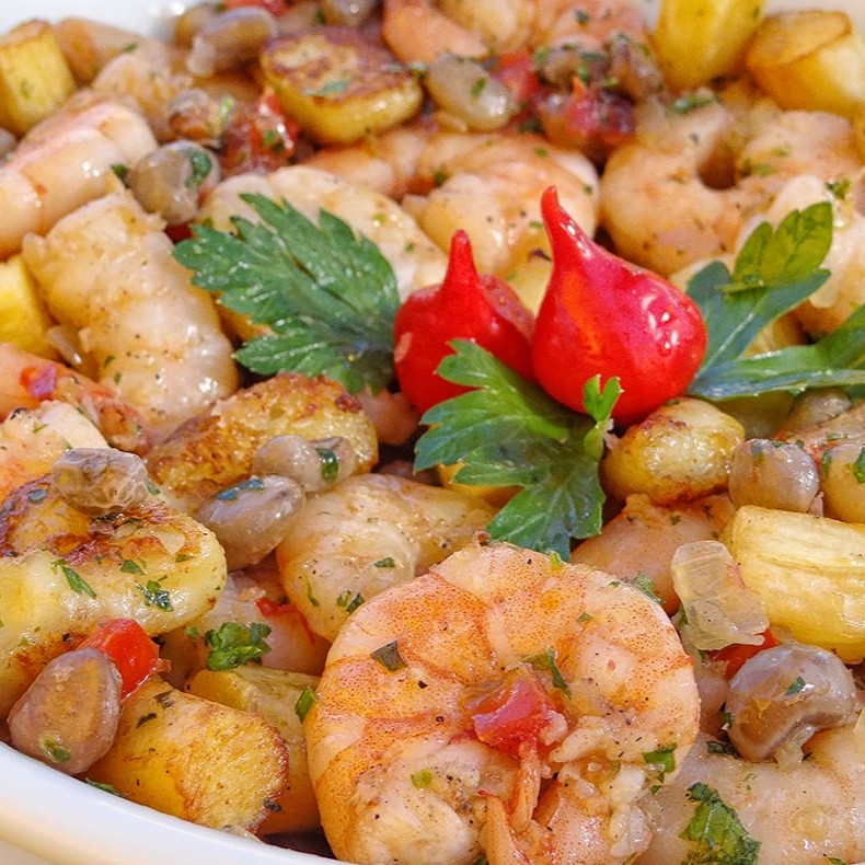 Camarão (300g), Feijão verde, Aipim Frito, Queijo coalho, Bacon, Vinagrete