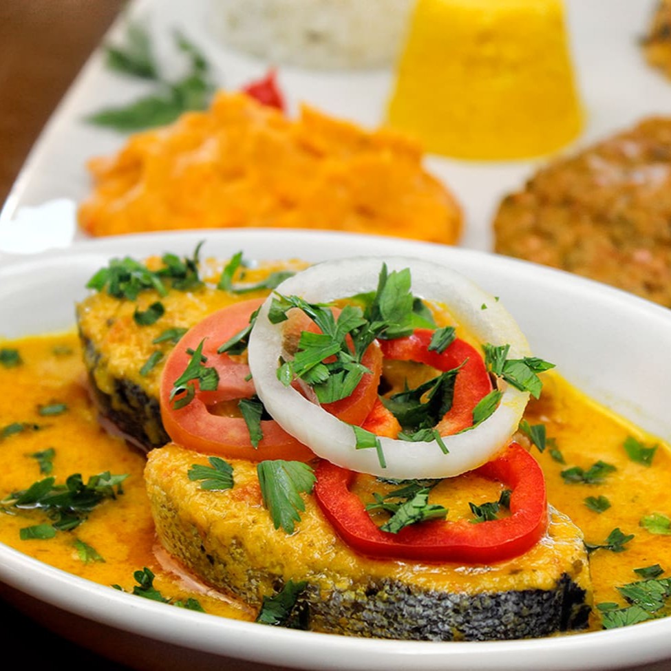 Moqueca de Peixe: Caruru, Vatapá, Fradinho, Arroz e Farofa