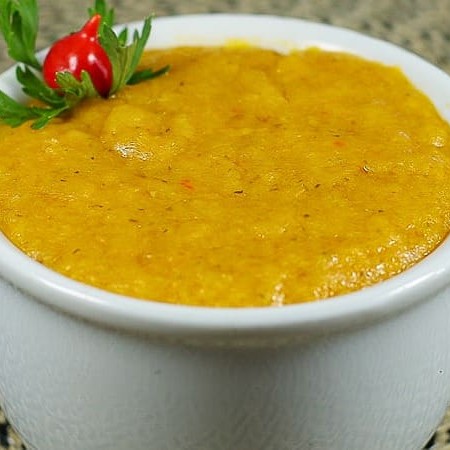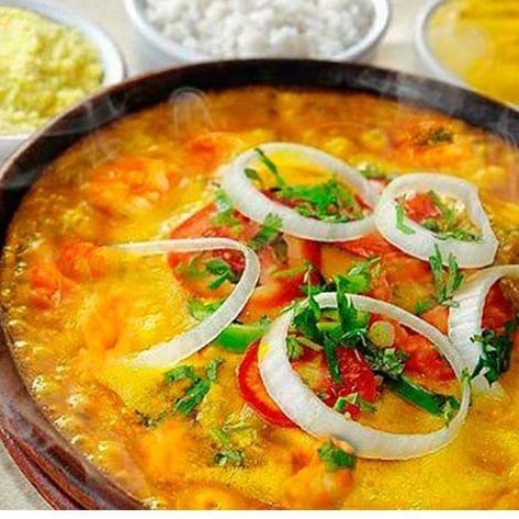 Moqueca de Camarão, Arroz, Feijão Fradinho, Pirão, Farofa.