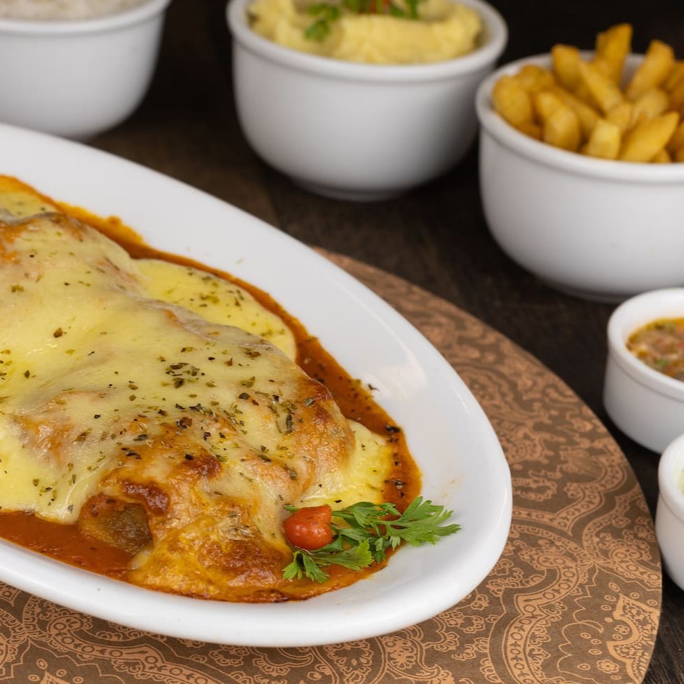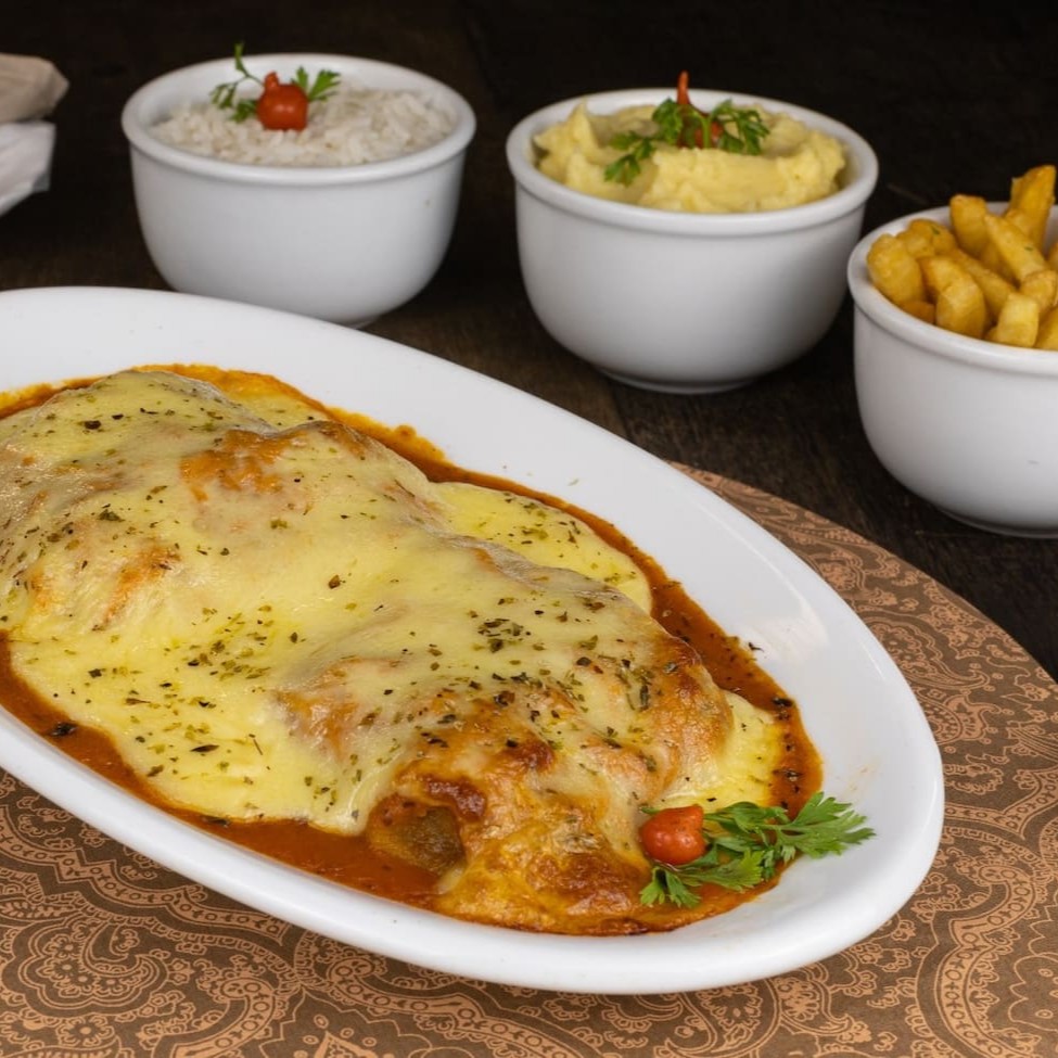 Fillet a Parmegiana: 150 g + 2 Acompanhamentos