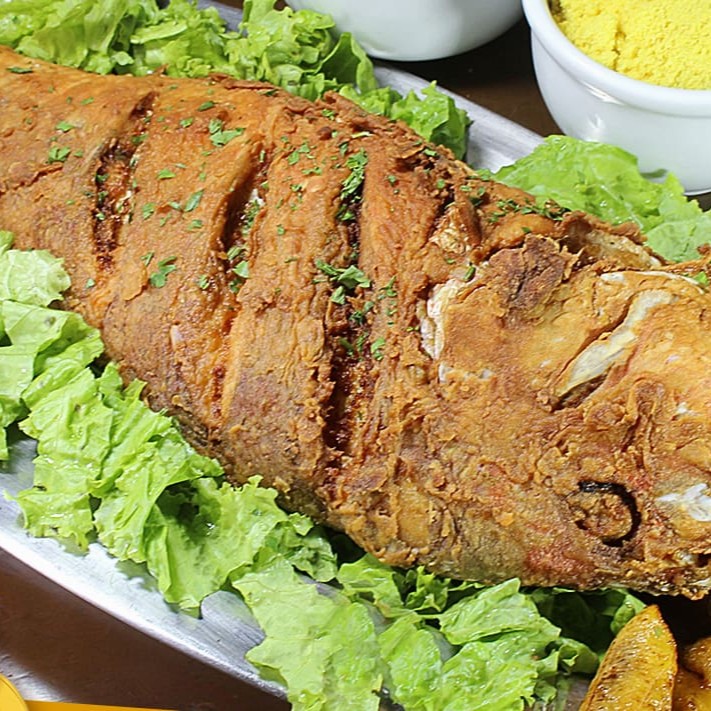 Peixe 1400g: Farofa, Vinagrete e Banana Frita