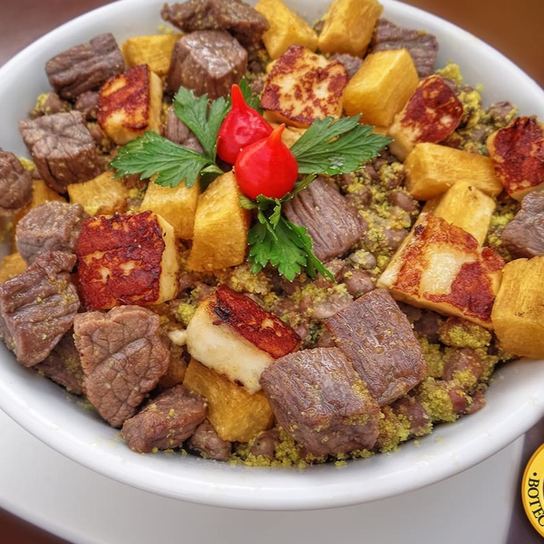 Carne do sol 200g, queijo coalho, aipim frito e feijão verde. Acompanha vinagrete.
