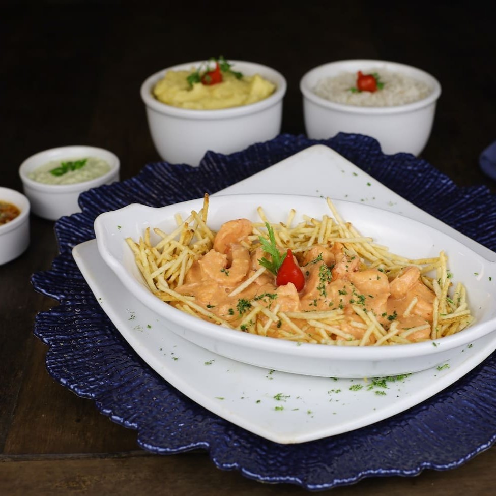 Strogonoff de Camarão com Batata Palha: Camarão 150g