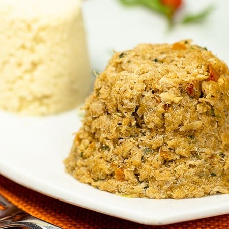 Peixe e camarão. acompanha arroz, pirão, farofa e feijão fradinho.
