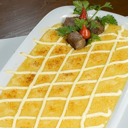 Batata Goumet: Carne Seca, Banana, Cebola, Alho, Creme de Leite e Manteiga de Garrafa