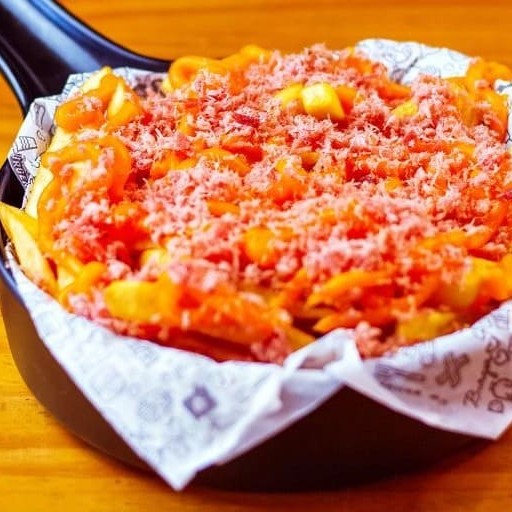 Batata frita (300g), coberta com cheddar cremoso e bacon em cubos crocantes.