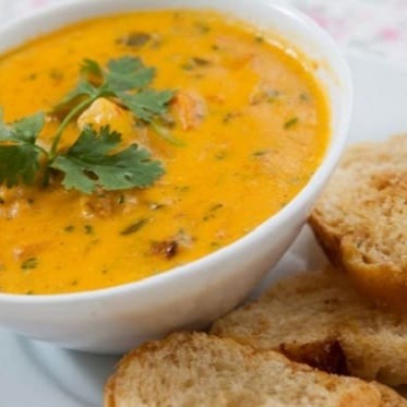 Caldo quente à base de aipim, preparado com camarão temperado. Porção de 250ml.