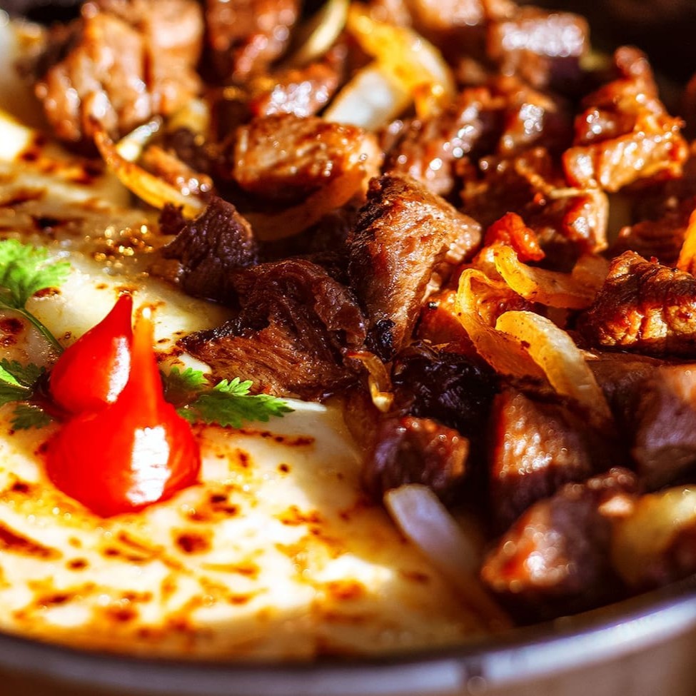 Pirão de aipim cremoso (500g) com 150g de carne de sol na chapa