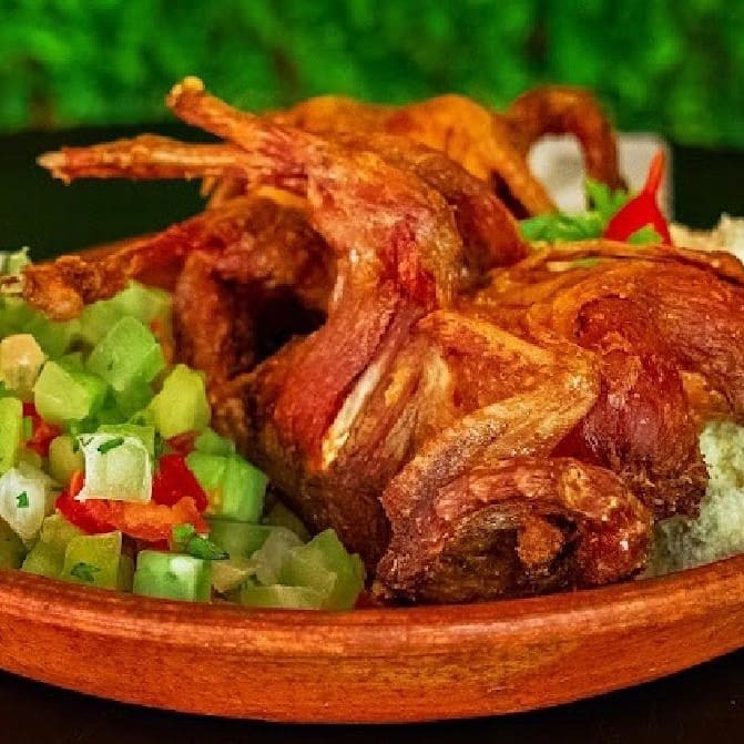 Codorna Dobrada C Farofa E Salada
