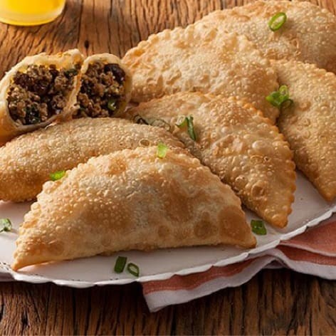 Porção com 8 unidades (35g cada), recheadas com carne temperada e queijo mussarela, fritas até ficarem crocantes.