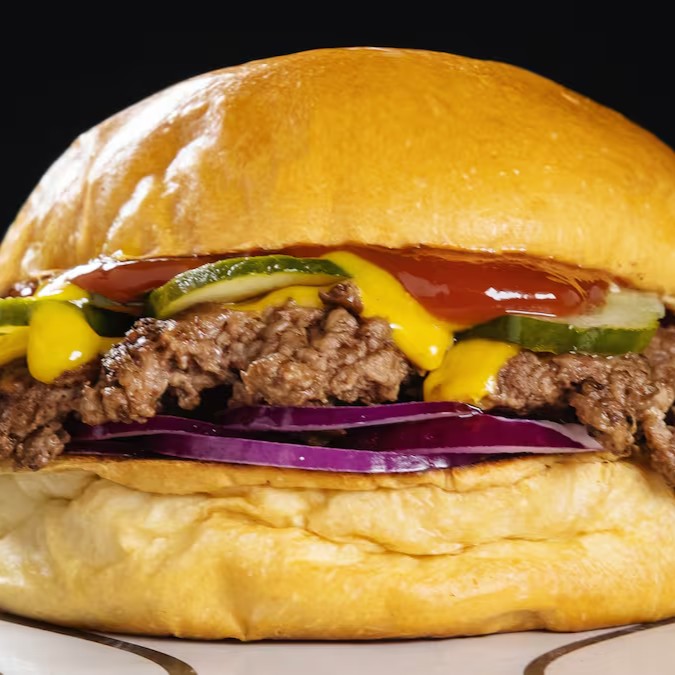 Pão brioche, smash de 100 g com nossa crostinha saborosa, fatia de cheddar, cebola, picles da casa, mostarda e Ketchup Heinz.