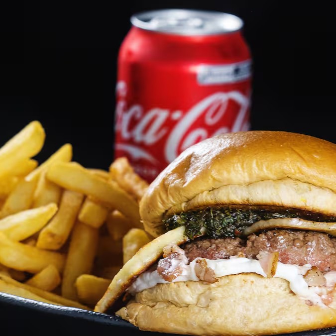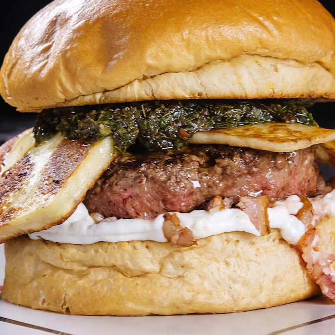 Pão brioche, blend 160g, queijo coalho, chimichurri, bacon cortado e aioli de limão siciliano
