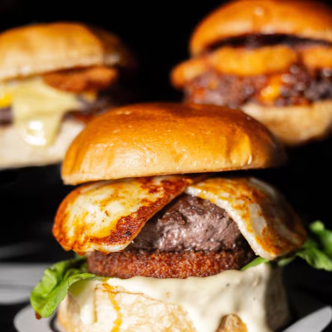 Pão brioche, blend 160g, queijo coalho, maionese texana, tomate empanado, rúcula e melaço.
