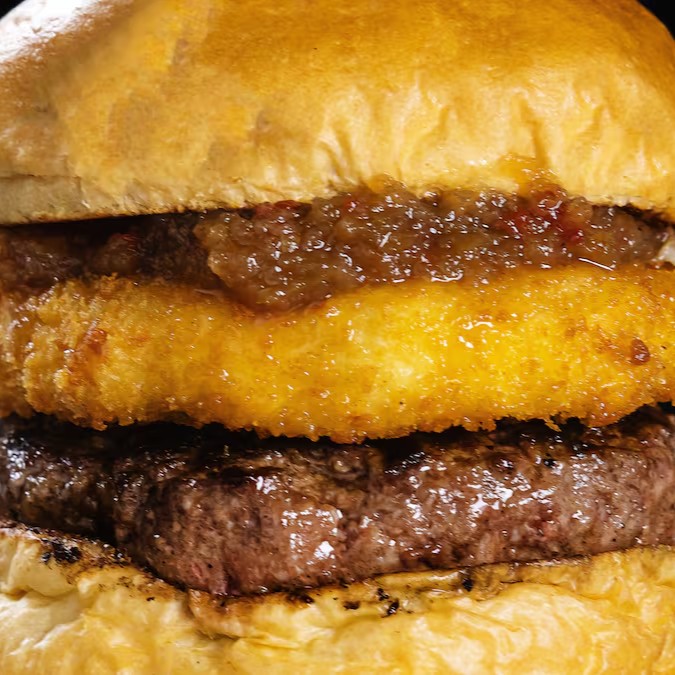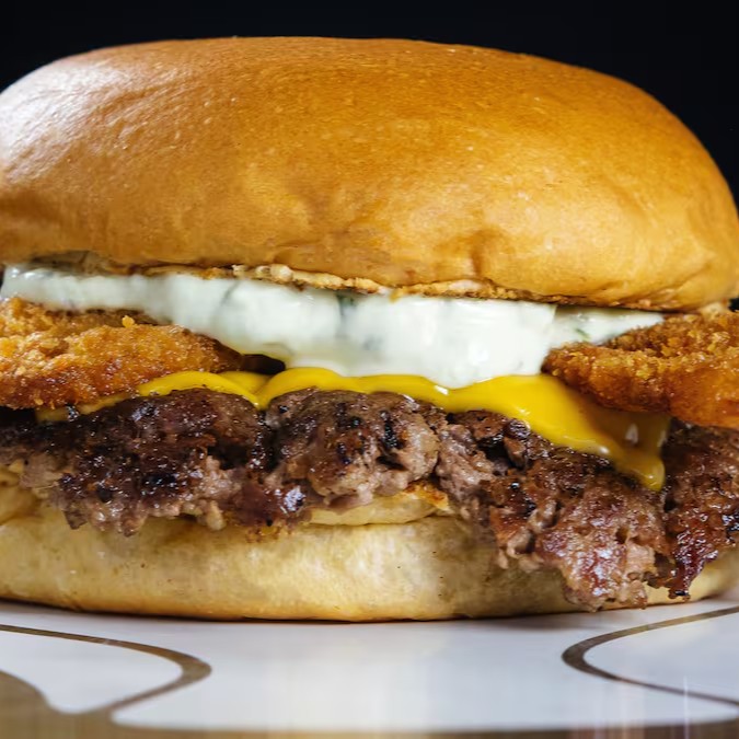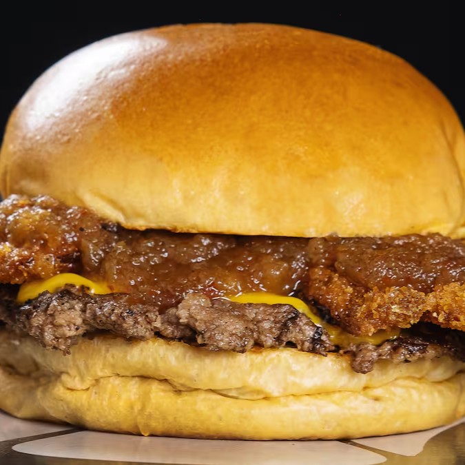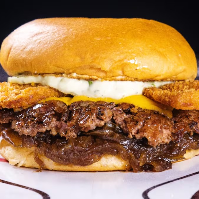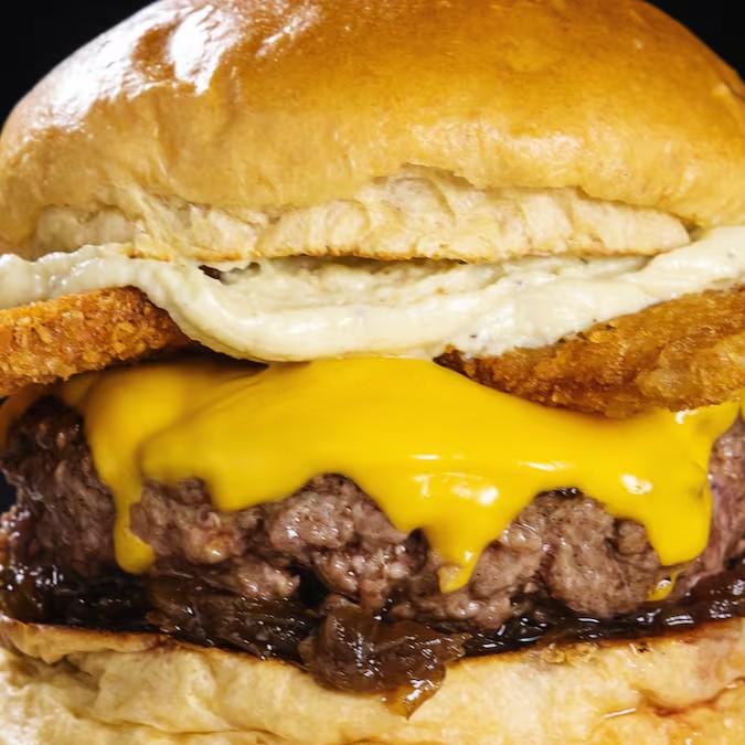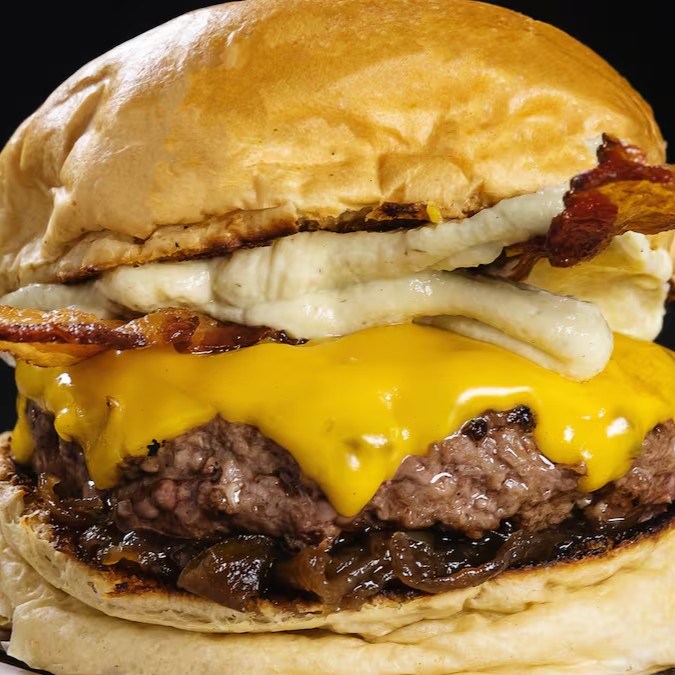 Pão brioche, blend 160g, cheddar fatiado, bacon empanado, cebola caramelizada e maionese texana.