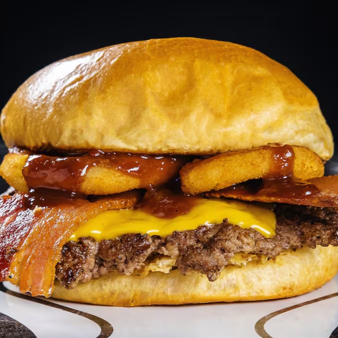 Pão brioche, blend 160g, queijo cheddar fatiado, bacon fatiado, cebola caramelizada e maionese texana.