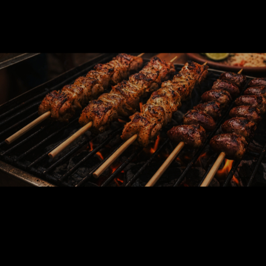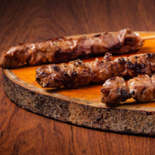 Imperdível! São 5 deliciosos e suculentos espetinhos, sendo 3 de frango e 2 de coração + acompanhamento grátis, você paga apenas 4 e ainda leva de brinde um acompanhamento grátis de farofa e salada vinagrete. Peça já!