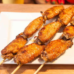 Espetinho de Asinha com 4 tulipas por palito + Acompanhamento de farofa e salada