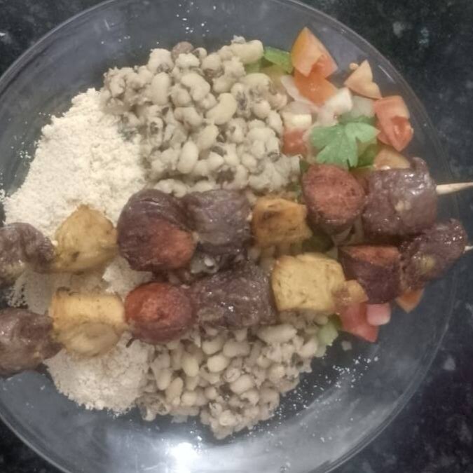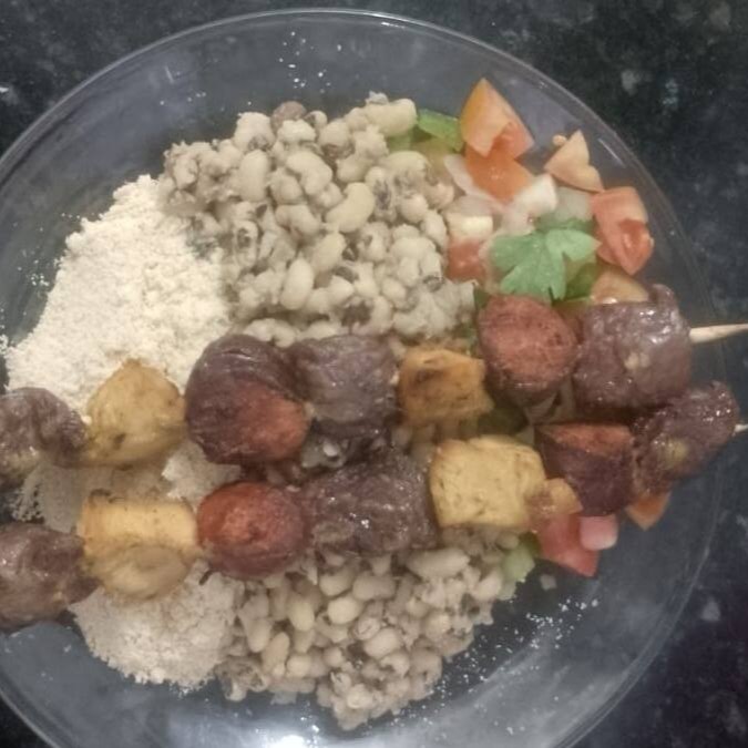 3 Espetinhos De Camarão 18 Unidades Alho E Óleo Com Farofa E Vinagrete