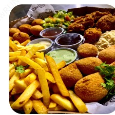 Nugget de frango, salada, 1 fatia de cheddar, molho especial, batata (200g) e refrigerante (350ml).