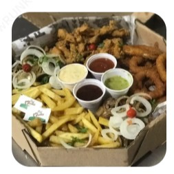 Massa talharim,frango,bacon,calabresa,milho,mussarela ,chedda ,catupirry batata palha