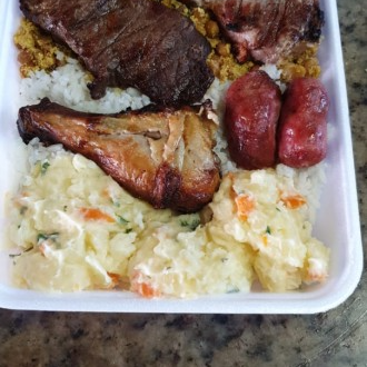 ACOMPANHA: FEIJÃO TROPEIRO, ARROZ, VINAGRETE, FAROFA E MAIONESE PROTEÍNAS: FRANGO, PORCO, BOI E CALABRESA