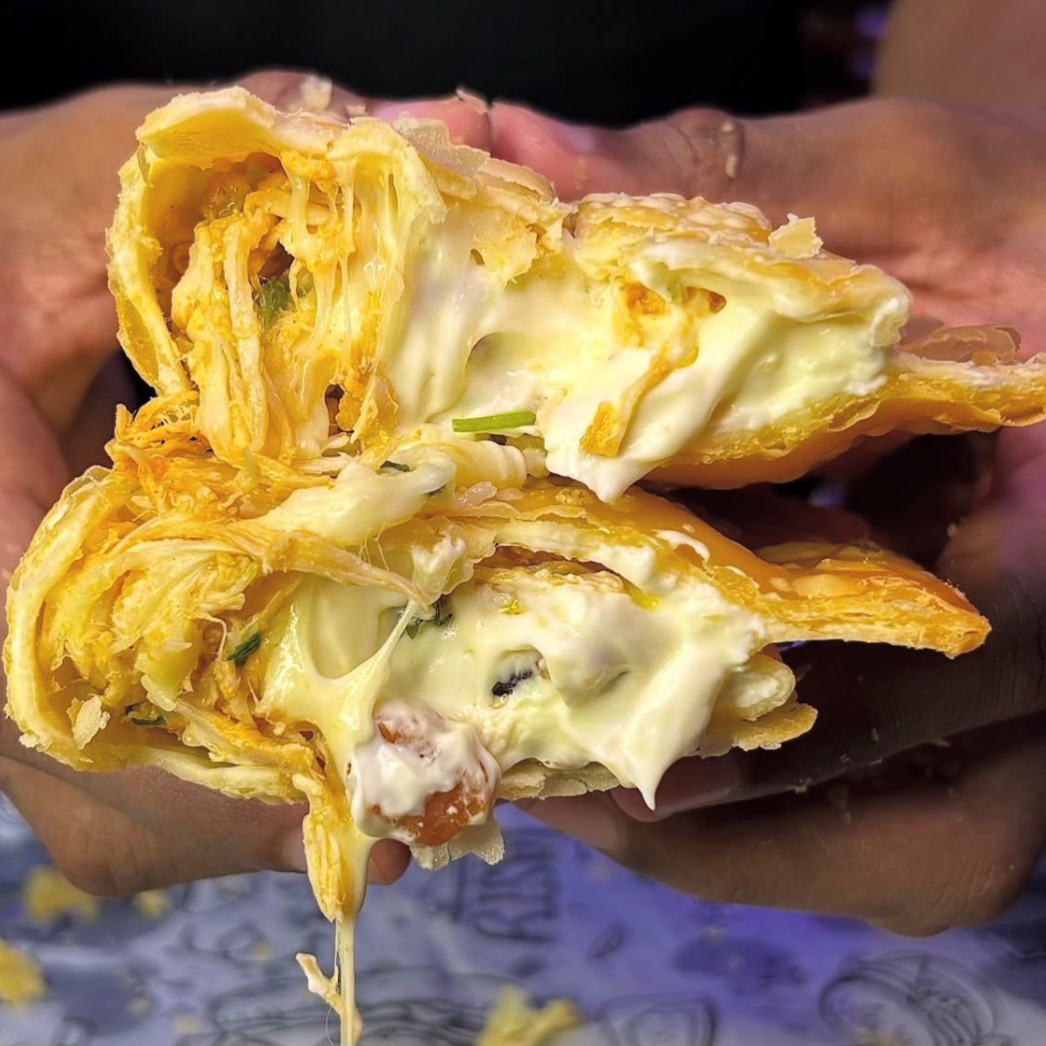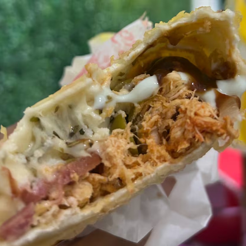 O verdadeiro sabor do Nordeste! Nossa massa super crocante vem recheada com um pirão de aipim irresistível, carne do Sol desfiada, requeijão cremoso e aquele toque de mussarela derretida que faz toda a diferença.