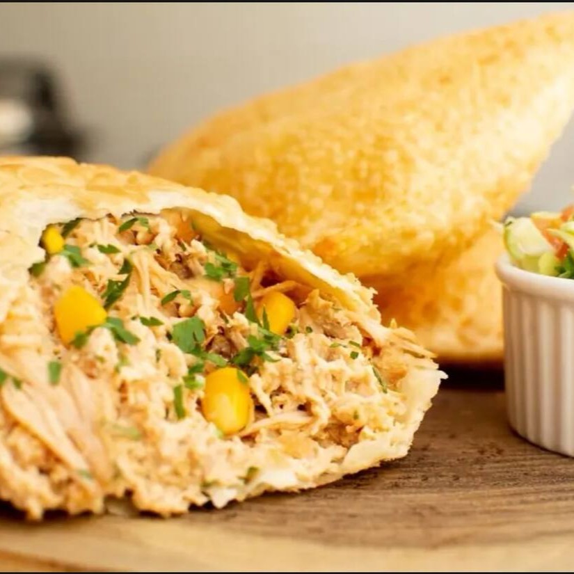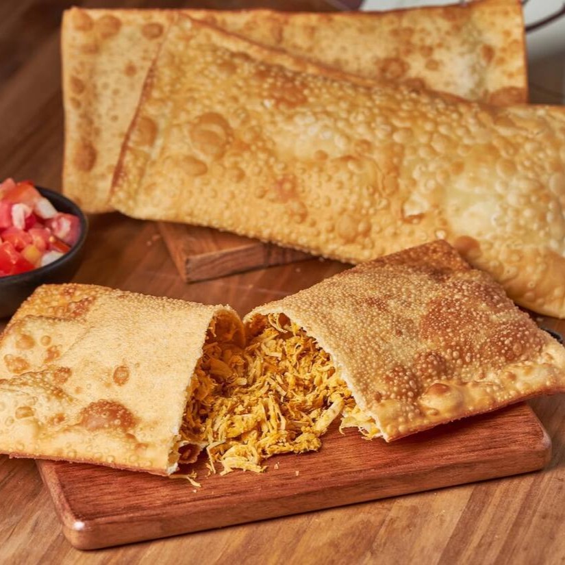 Frango desfiado bem temperado , cream cheese e orégano. A combinação perfeita para quem ama um recheio suculento e uma massa que derrete na boca.