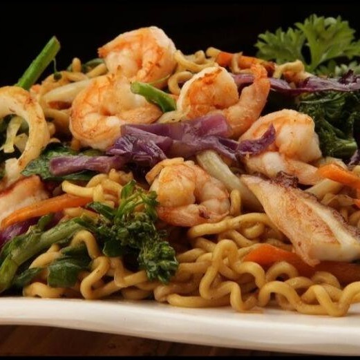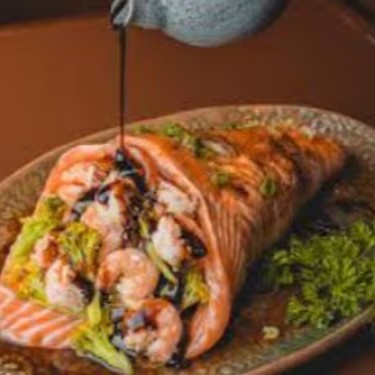 Camarão, brocólis cream shesse, salmão grelhado , arroz gohan , Cebolinha ao molho .