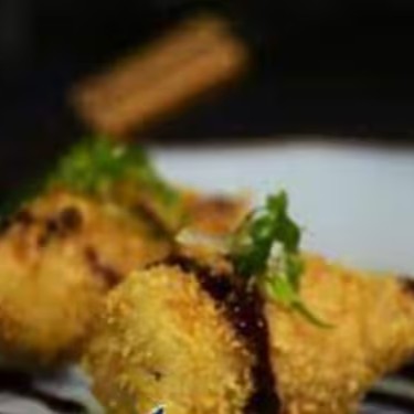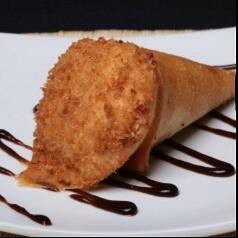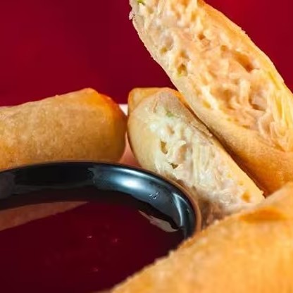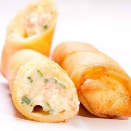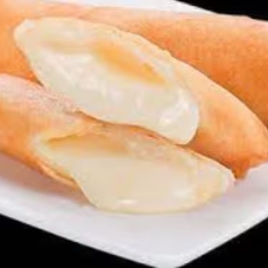 Massa de harumaki recheada com cream shesse e doce de leite.
