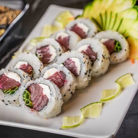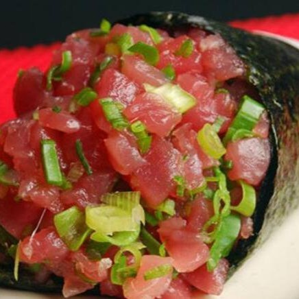 Alga nory envolto de arroz atum cream shesse cebolinha .