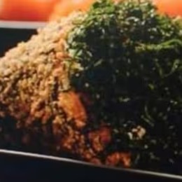 Salmão envolto camarão empanado cream shesse ao molho especial .