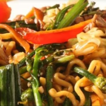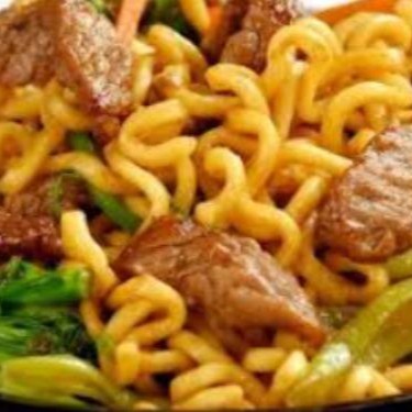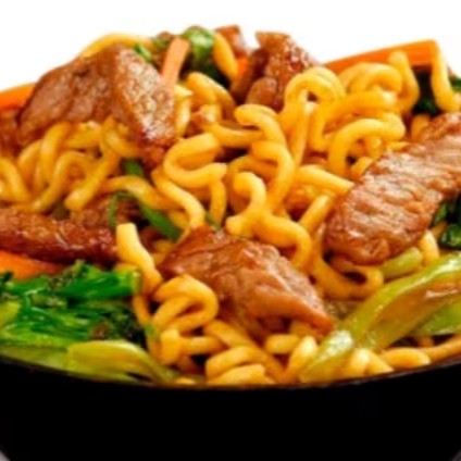 São dois yakissoba 500 gr cada ( carne e frango) + 2 rolinho primavera .