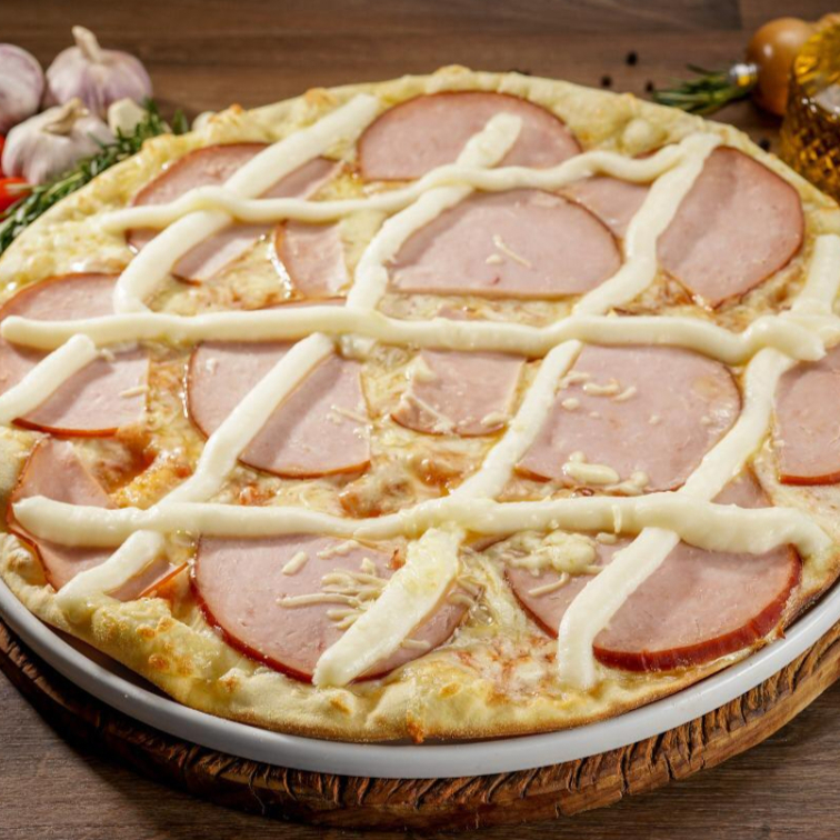 Pizza Mista irresistível, preparada com massa tradicional macia, leve e dourada, feita para proporcionar uma experiência deliciosa em cada pedaço. Cobertura generosa e caprichada de mussarela derretida e super cremosa, combinada com presunto fatiado suculento, molho de tomate saboroso, azeitonas selecionadas e um toque aromático de orégano.