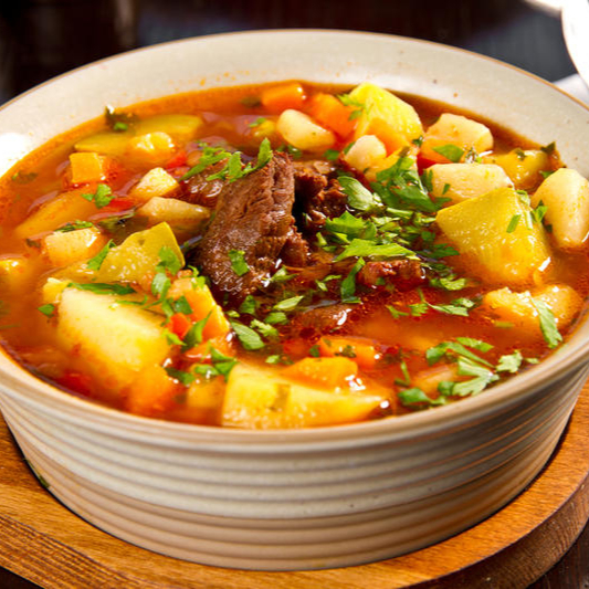 Marmita de Ensopado de Carne com Batata preparada na hora, com carne macia e suculenta, cozida lentamente com batatas bem temperadas, envolvida em um caldo encorpado e cheio de sabor, trazendo aquele gostinho caseiro e irresistível. Acompanha arroz branco soltinho, macarrão saboroso, feijão de caldo encorpado e salada fresquinha.