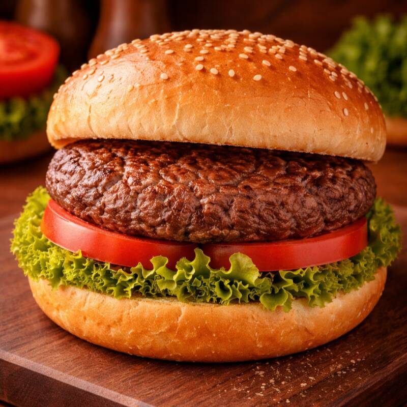 Hambúrguer preparado na hora, com carne suculenta e bem temperada e salada fresca e crocante, criando uma combinação simples, leve e cheia de sabor.