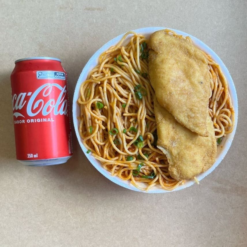 Um clássico irresistível: peito de frango empanado, dourado até ficar crocante por fora e macio por dentro, acompanhado de macarrão ao molho caseiro cremoso. Para completar, um refrigerante gelado que deixa essa refeição ainda mais especial.