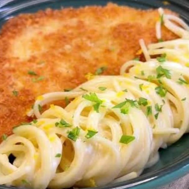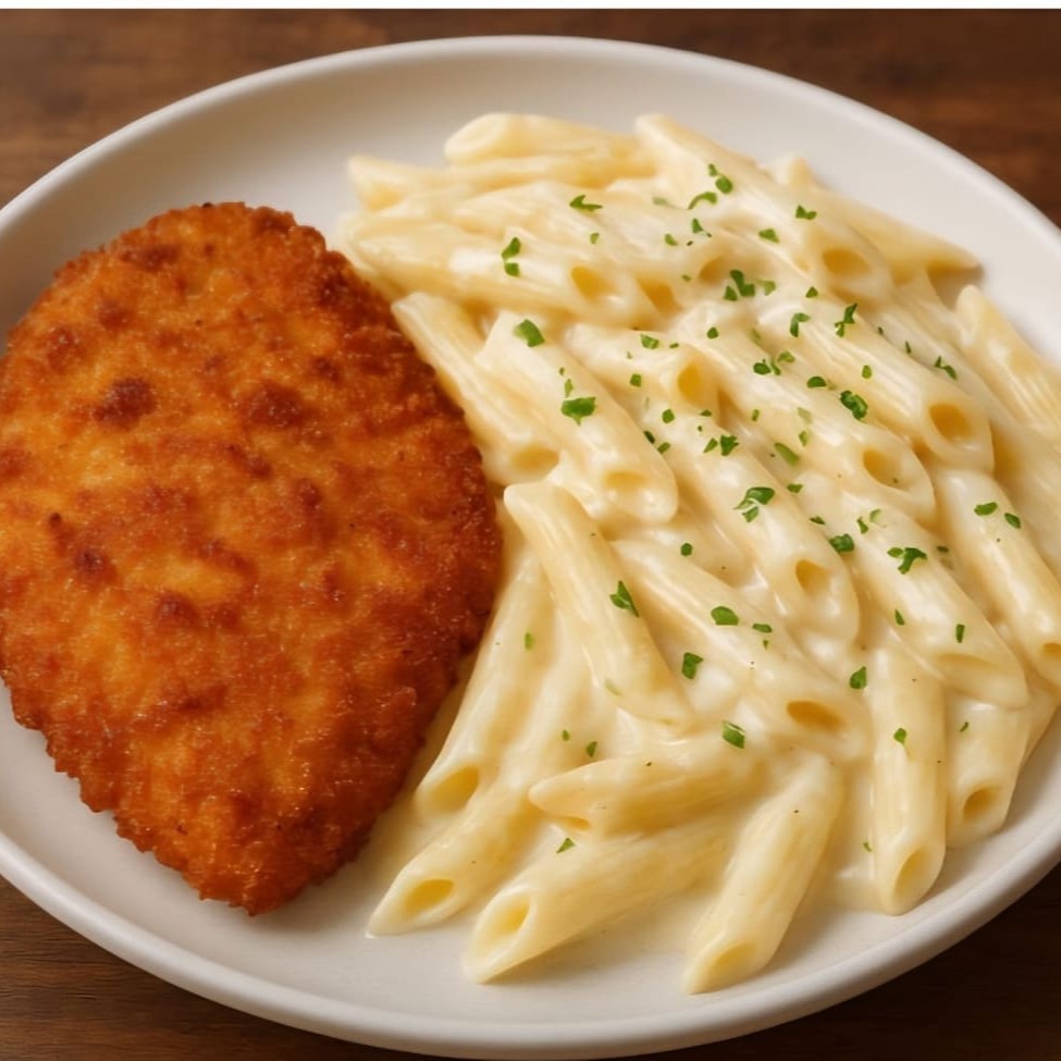 Milanessa De Frango Com Penne Ao Molho Branco Para 2 Pessoas