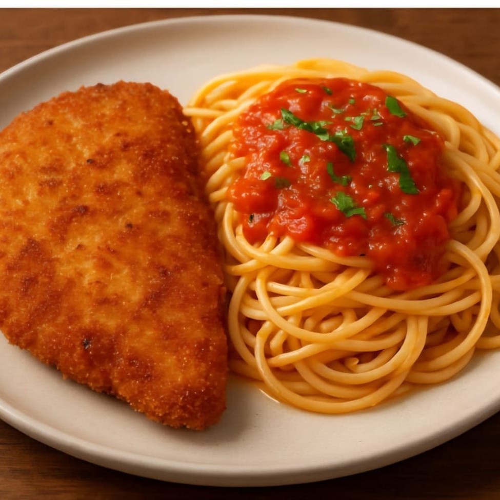 Filé De Frango A Milanesa Com Espaguete Ao Molho De Tomate