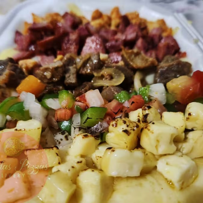 Nosso Irresistível pirão De Aipim com Carne de sol, Frango, Calabresa, cheddan, Catupiry, Queijo Maçaricado e Salada! Tamanho M