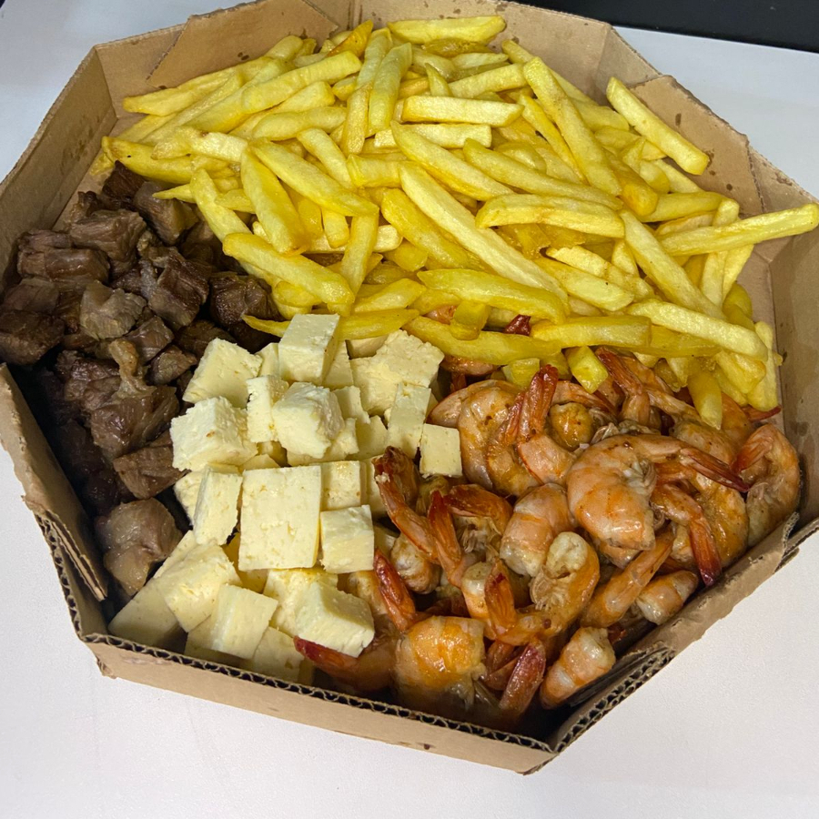 10 Coxinhas ,10 risole 10 bolinho de pizza, 10 Pastéis ,Batata frita,camarão alho e óleo ,Carne do sol ,calabresa ,Frango em tira ,Queijo coalho