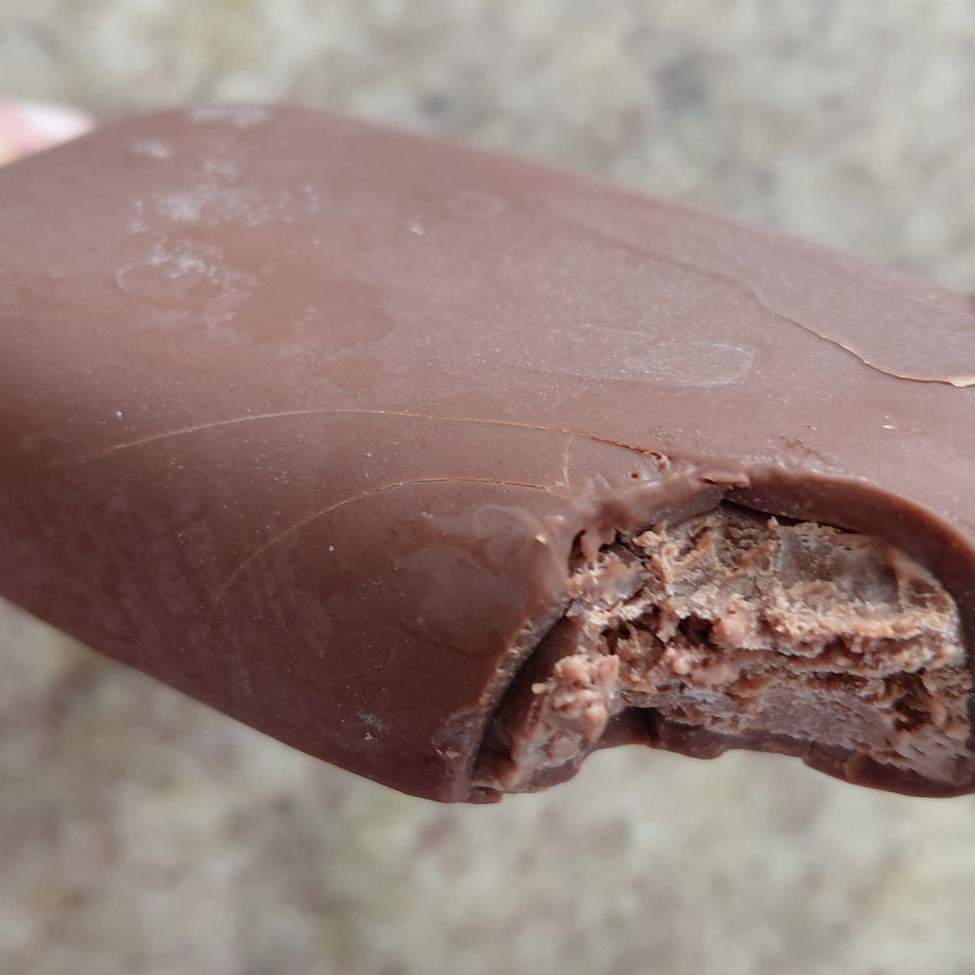 Delícia de geladinho de Ovomaltine com casquinha de chocolate tipo blend.