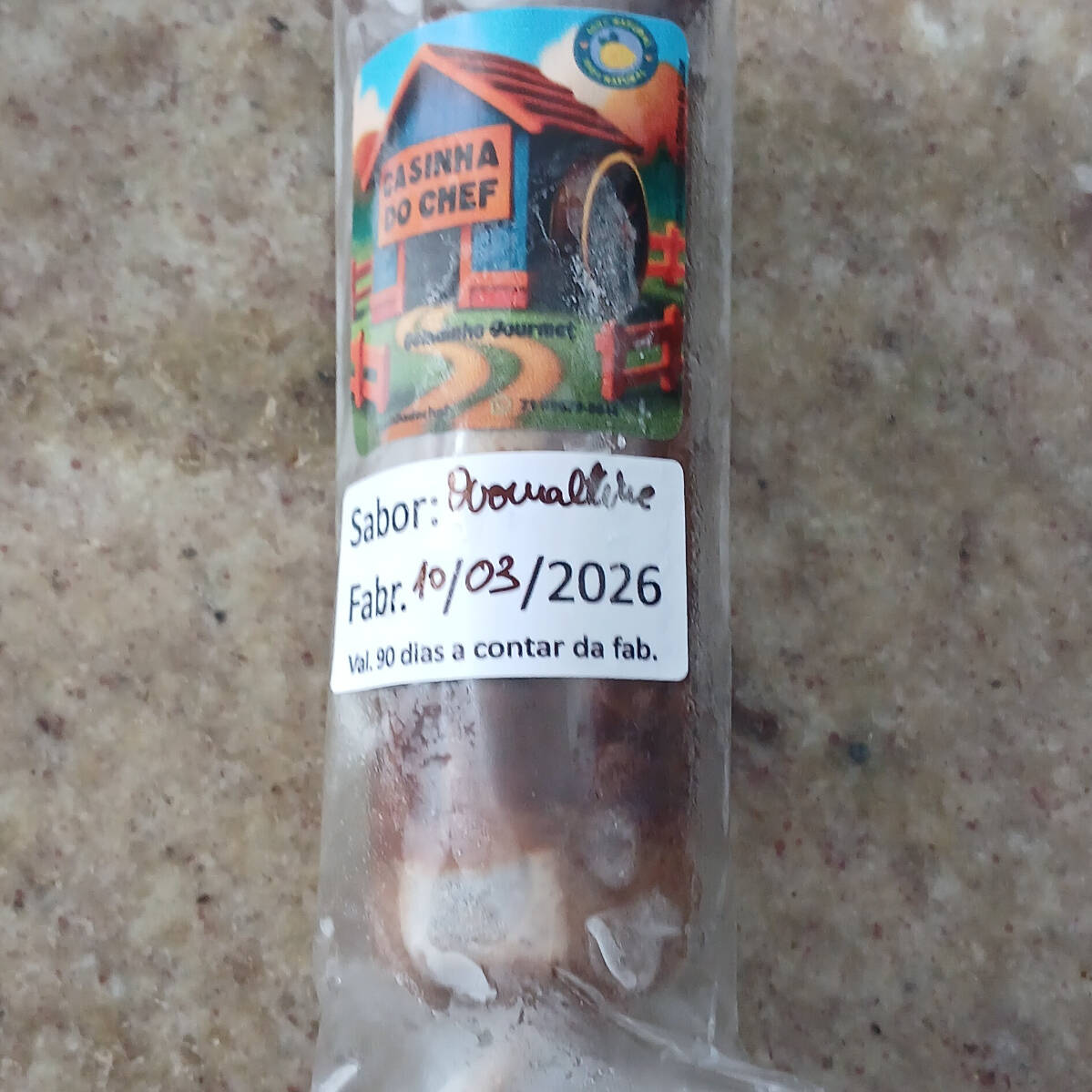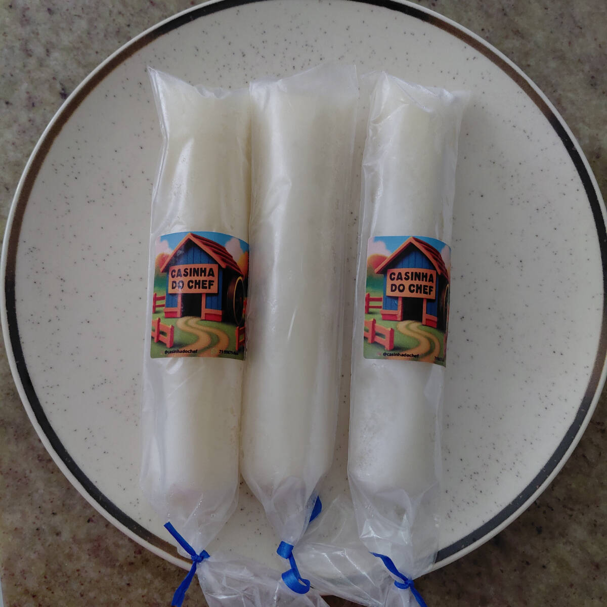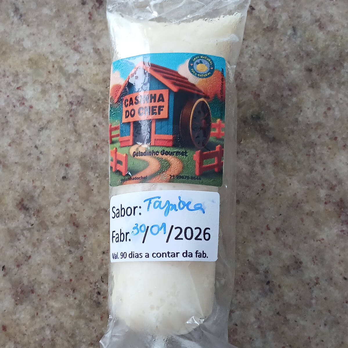 Nosso picolé gourmet de tapioca, leva o nome de cuscuz, pois parece que você está comendo uma fatia de cuscuz de tapioca congelado. Experimente!
