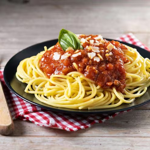 Espaguete á bolonhesa, molho de tomate artesanal e carne moida com tempero inrresistível.