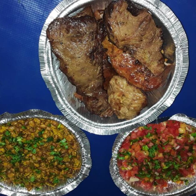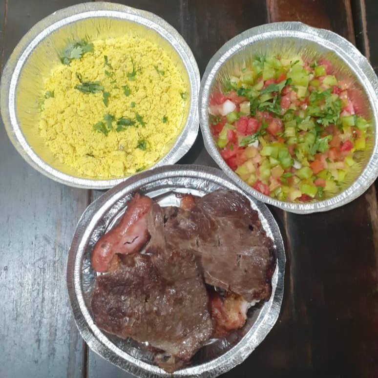 P/ 2 pessoas (feijão tropeiro, salada vinagrete, carne de boi, calabresa, frango e pernil)