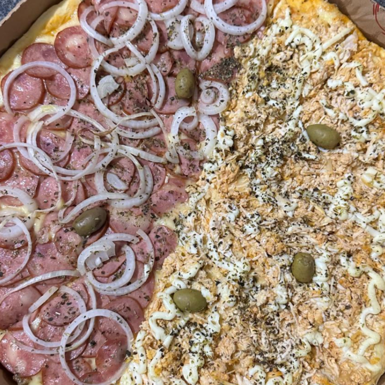 Promoção Pizza Familia Meia Calabresa Meia Frango Com Catupiry + 1 Refri De 1 Litro