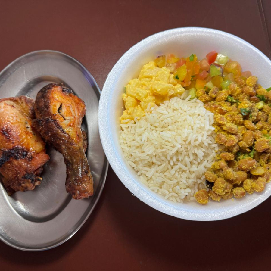 Feijão tropeiro , arroz branco , vinagrete , maionese e farofa