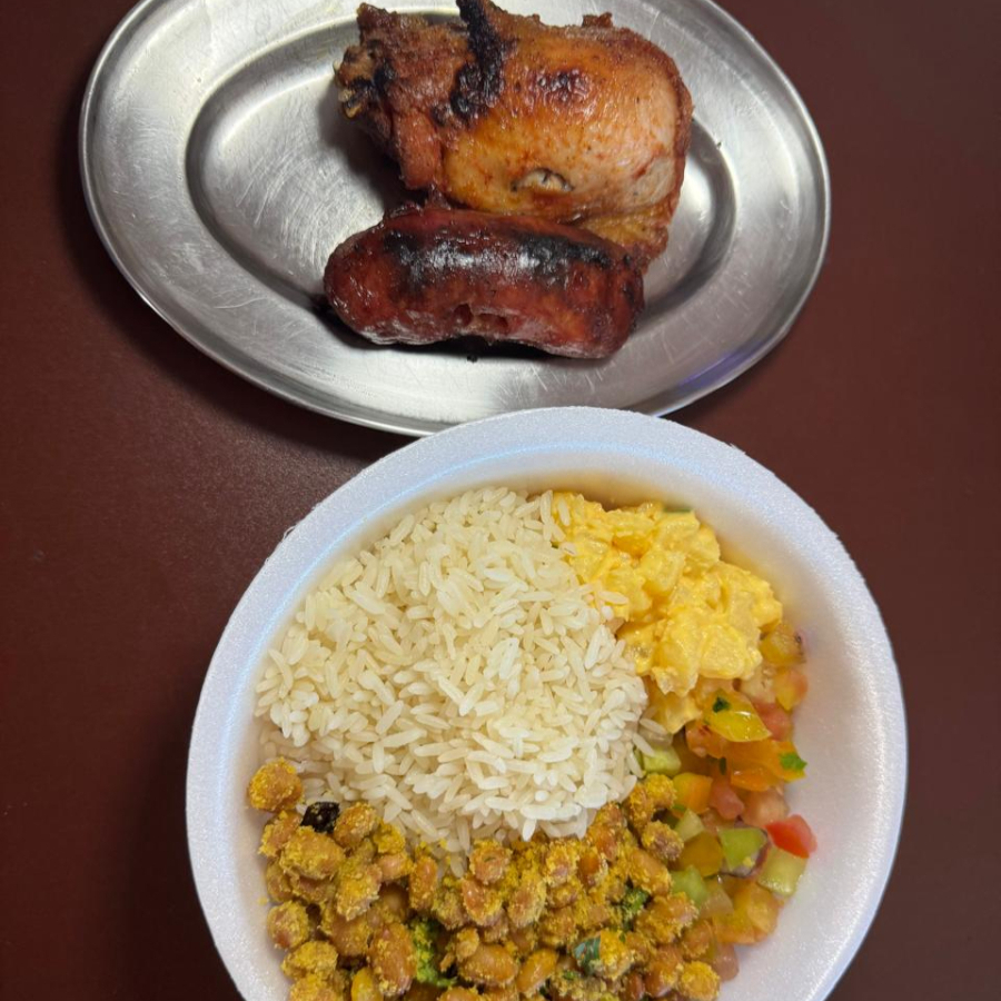 (4 filés, 4 frangos, 4 toscanas, 1 bisteca, 1 carne de sol, 2 Feijão tropeiro, 2 Arroz branco , 1 Farofa, 1 Maionese, 1 Vinagrete