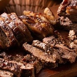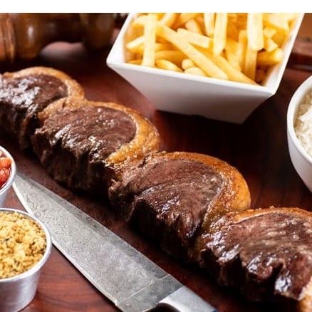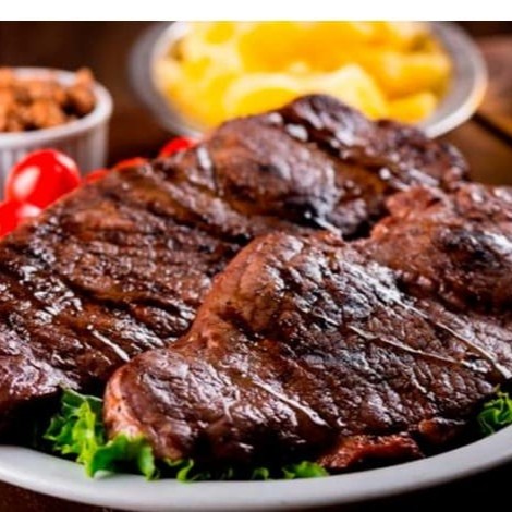 Alcatra, linguiça, coração, farofa e vinagrete, 500 g