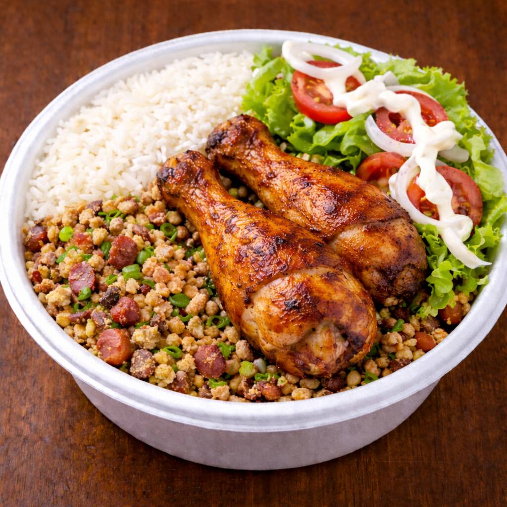 Prato Misto(frango, Linguiça E Coração) + Coca-cola Lata