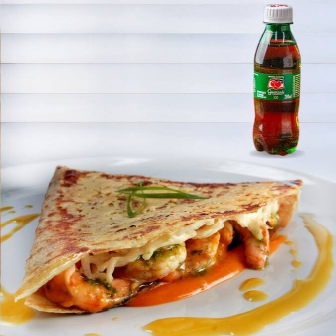 Desfrute de nosso Crepe de Camarão, cuidadosamente elaborado com uma massa artesanal crocante, recheado com queijo mussarela suave e camarão fresco, cuidadosamente temperado e refogado na manteiga. A cremosidade do requeijão torna este prato ainda mais indulgente. Para complementar essa deliciosa experiência gastronômica, este combo inclui um refrescante refrigerante Guaraná Antártica de 200ml, perfeito para dar aquele toque final de sabor. Uma combinação irresistível que vai aguçar seus sentidos.